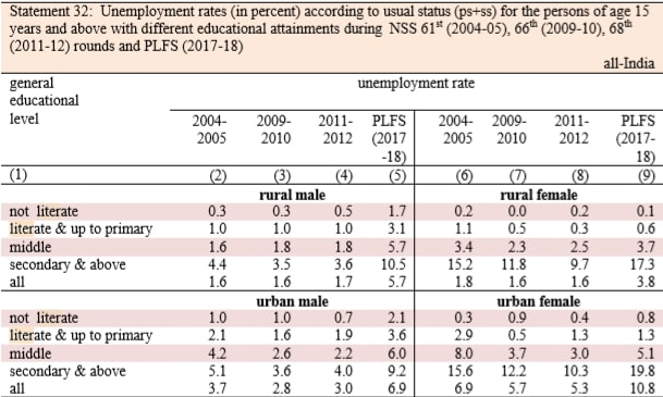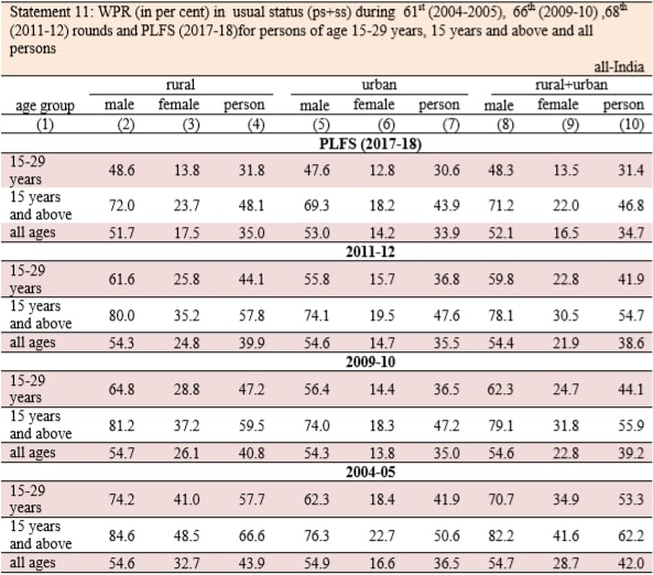 The worker population ratio shown in the table above signifies the increase in educated unemployment over the recent years. This is because of reasons like lack of job opportunities, skill development, need for higher studies, and high population.